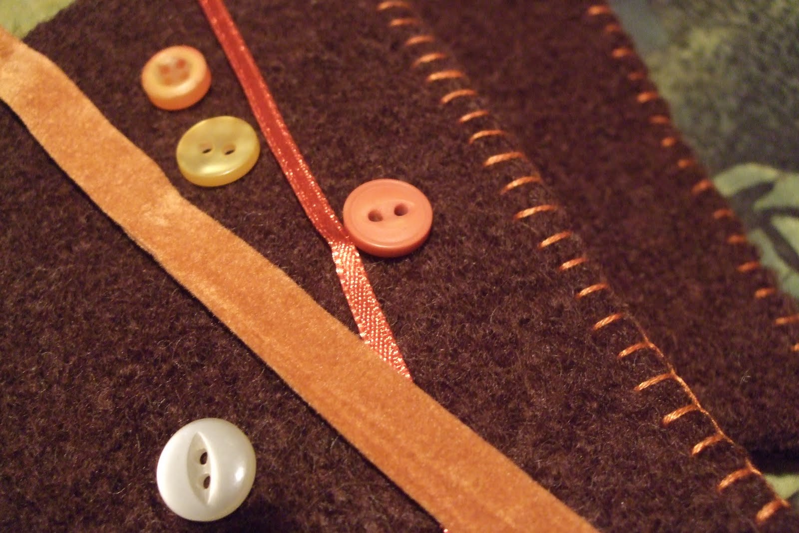 This one is multi-layers of felt, cotton, satin and silk also topped with a vintage button. All the materials are reclaimed or recycled except the felt. I'm disappointed that the colours haven't come out well. They are much richer in real life!